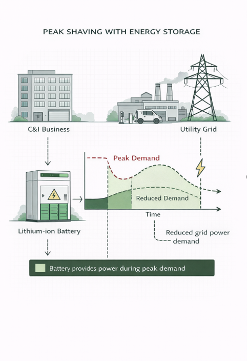 Energijos kaupimo sistemos leidžia sumažinti šiuos pikus. Kai elektros poreikis staiga padidėja, baterija gali trumpam perimti dalį apkrovos ir taip sumažinti energijos poreikį iš elektros tinklo. Būtent dėl šios priežasties C&I kaupikliai tampa itin naudingu sprendimu pramonės įmonėms, logistikos centrams ar prekybos objektams, kuriuose elektros apkrova gali smarkiai svyruoti.